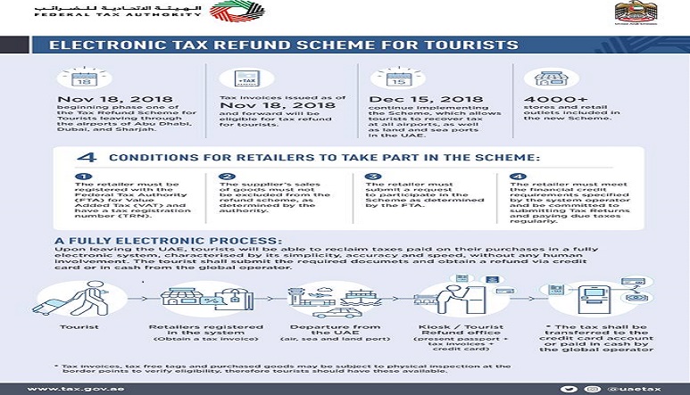 The FTA has announced that the tax refund scheme for tourists will take its effect from November 18, 2018.